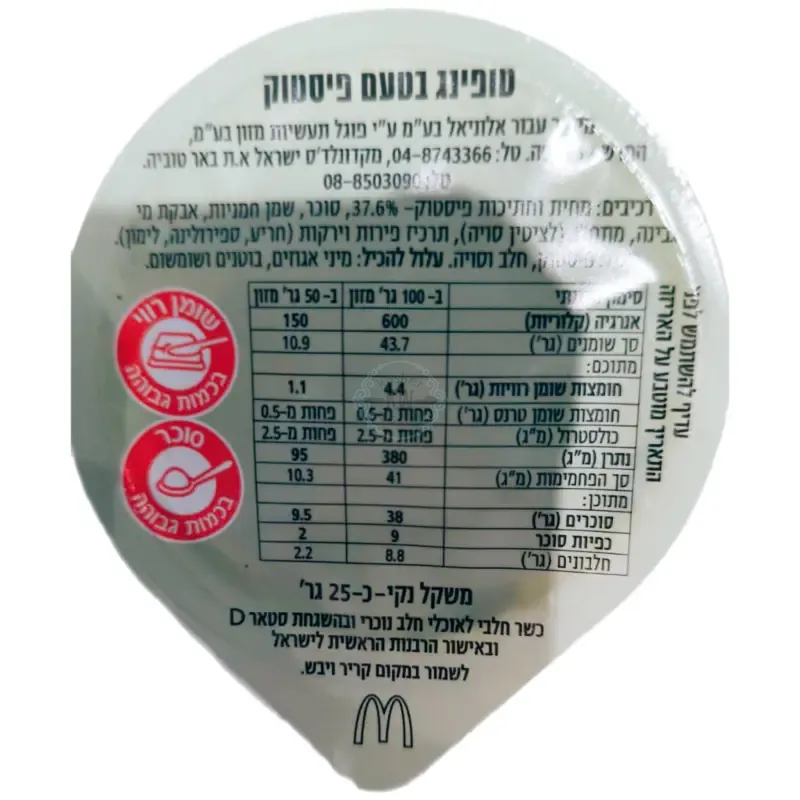 מקדולנדס-אלוניאל: רוטב טופינג בטעם פיסטוק
