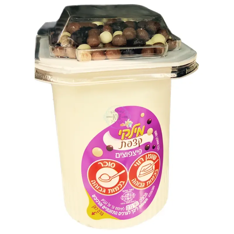 שטראוס-מילקי קצפת פצפוצים: מעדן חלב קצפת עם אורז תפוח מצופה שוקולד ואבקת קקאו